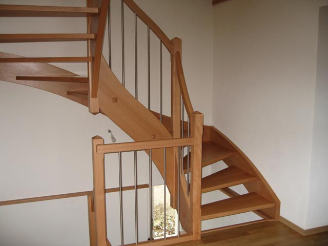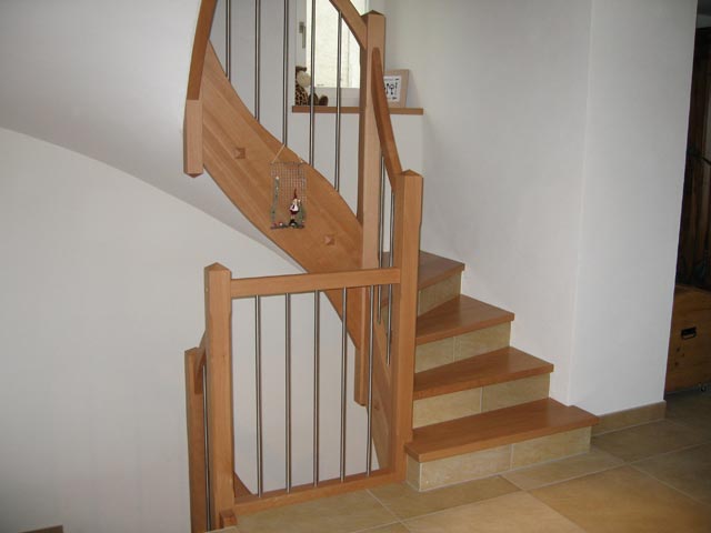 Projection dans l’espace, souci de la finition, habileté à façonner le bois, tels sont les trois savoir-faire nécessaires à la réalisation des escaliers. Forte de cette expérience, l’entreprise réalise les travaux les plus spécifiques, exécution « tout bois » ou assemblage mixte avec d'autres matériaux tels que l’inox.